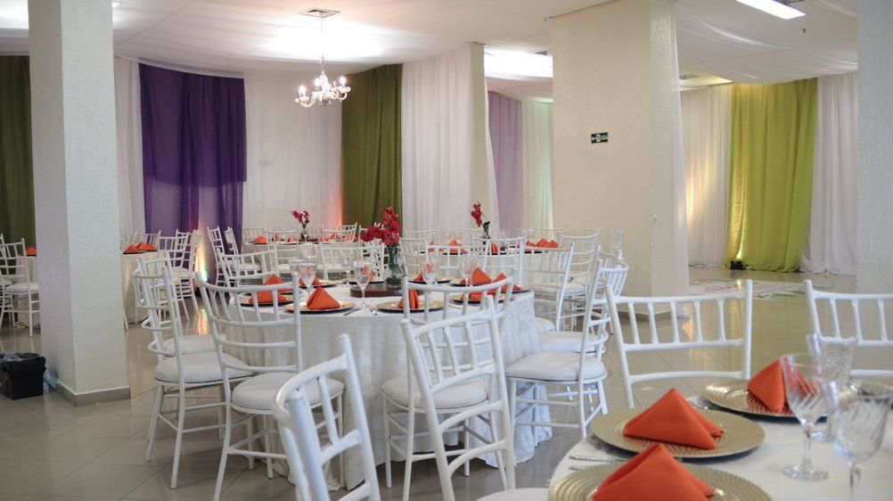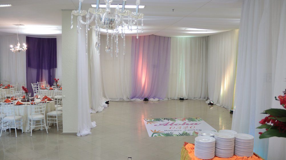 Comporta palestras, congressos, workshops e festas estilo banquetes casamentos, aniversários, confraternizações.