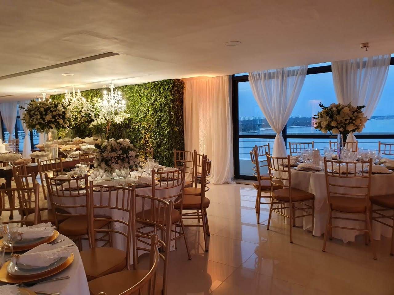Salão localizado no 16º Andar, com vista panorâmica para o Rio Negro e Praia da Ponta Negra.